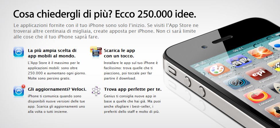 Apple ha quindi risolto “l’arcano” delle app annunciate nelle presentazioni. Non ci dice se nel conteggio risultano anche quelle inattive, però ci conferma che ai keynote si parla solo dello Store americano. Lo Store USA è ovviamente quello più ricco, noi europei però non possiamo lamentarci (anche in Francia ed Inghilterra vengono riportate le stesse cifre italiane), 250.000 idee non sono poche!