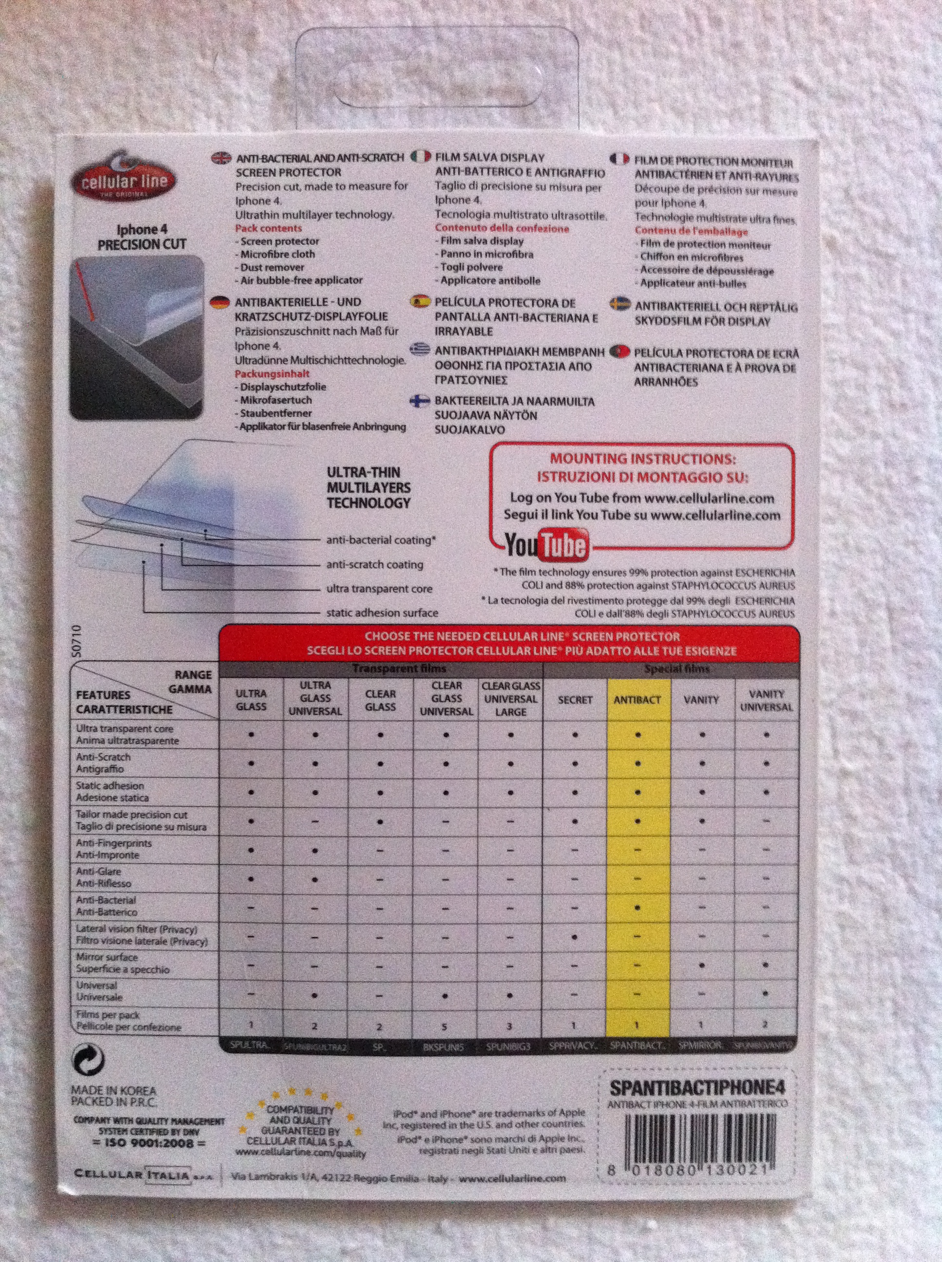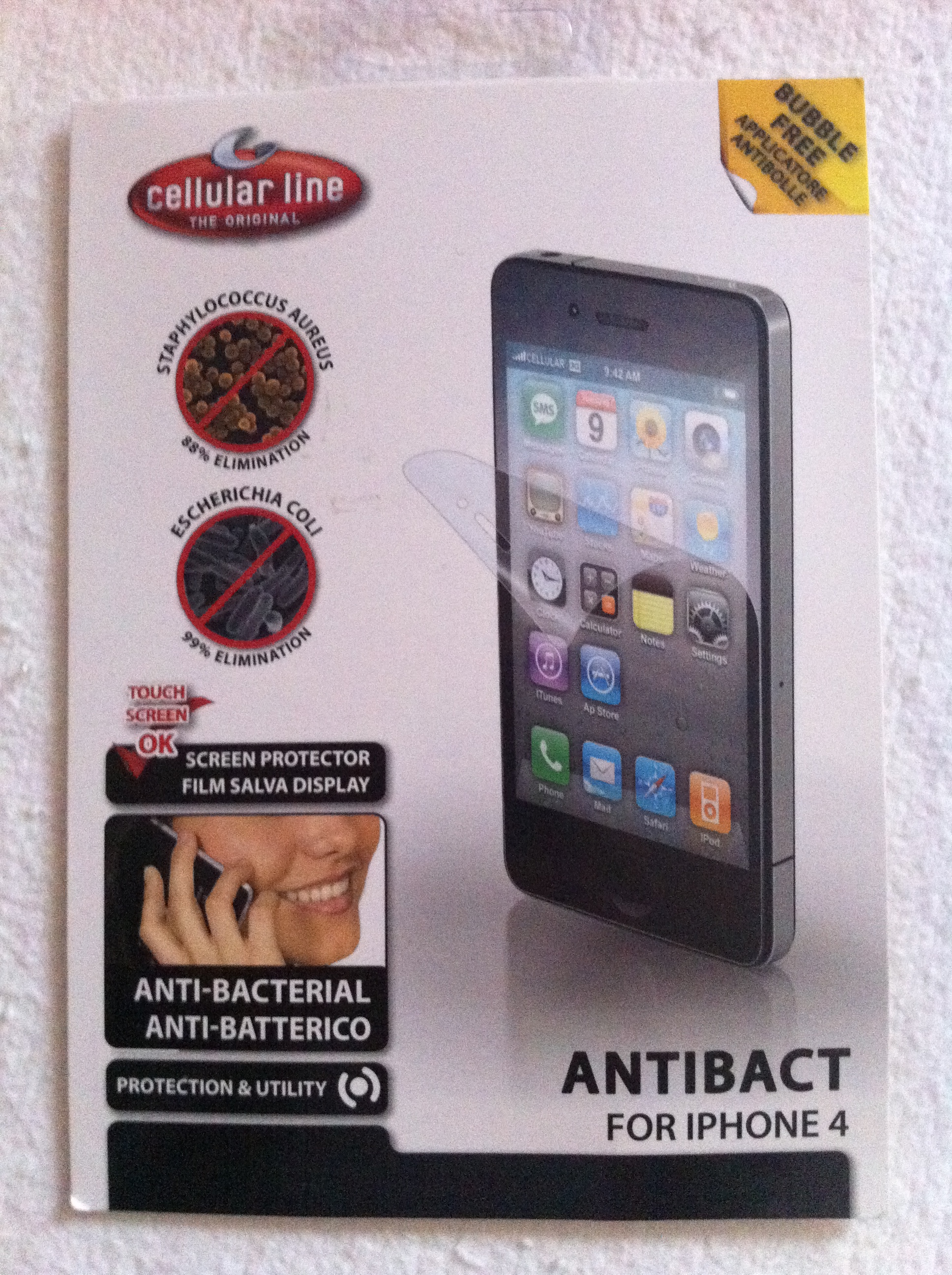 Ultimo prodotto che abbiamo avuto modo di provare è lo Screen Protector Antibact, un proteggi schermo che oltre a proteggere lo schermo del nostro dispositivo, respinge i batteri che si insediano sulla superficie. Realizzata con una speciale micro trama a cunei che non permette ai batteri di attaccarsi al cellulare. La pellicola è molto sottile ed aderisce perfettamente all’iPhone. Prezzo: 9.90€.