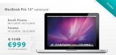 - Macbook Pro base da 13″ al costo di 999€ invece di 1149€ (25 pezzi disponibili in entrambi i punti venduta);