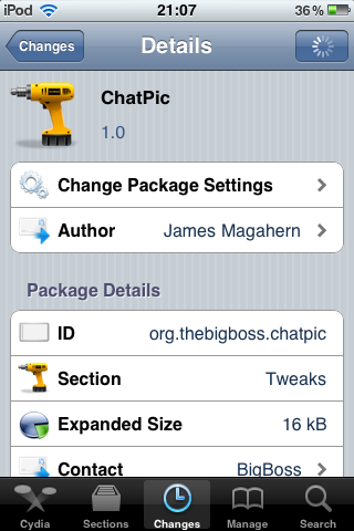 ChatPic è reperibile in Cydia Store nella repository di BigBoss a un costo di 0,99$, è compatibile esclusivamente con iPhone e richiede iOS 4.0 o successivi.