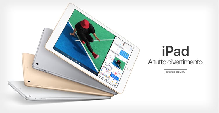 Il nuovo iPad con display Retina da 9.7″ sarà disponibile in tre varianti di colore: Argento, Oro e Grigio Siderale. Il nuovo tablet potrà essere ordinato a partire dalle 16:01 del 24 Marzo 2017. Questi i modelli con rispettivi prezzi: