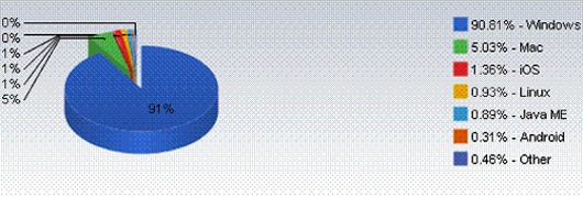 Al primo posto troviamo Internet Explorer, al secondo posto Firefox, al terzo Chrome (che nel mese di Novembre ha avuto un forte incremento della percentuale), al quarto Safari (incluso quello Mobile per iOS), al quinto e sesto posto Opera e Opera Mini ed infine gli altri browser. In quest’ultimo grafico non sono stati presi in considerazione i sistemi operativi, bensì i soli browser.