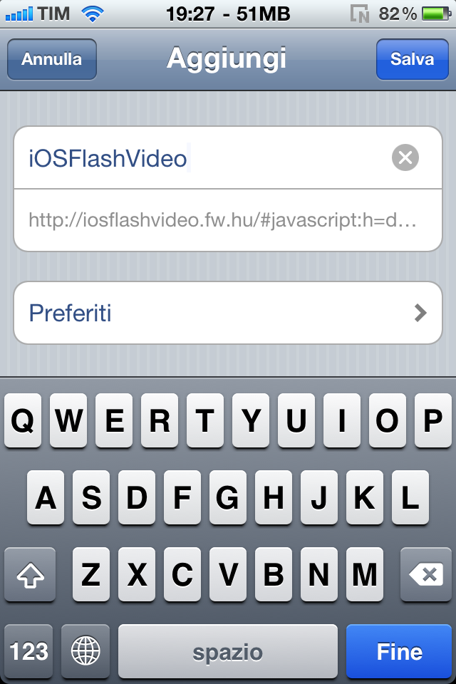 3. A questo punto cliccate sull’icona dei preferiti (il piccolo libricino sulla barra inferiore) , selezionate “Modifica” e poi scegliete iOSFlashVideo