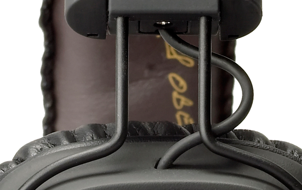 Ma prendiamo in considerazione i materiali, sui quali possiamo dilungarci un po’ di più nella descrizione. I padiglioni e l’archetto delle Major sono rivestiti di un’ottima pelle conciata che, a differenza di quanto si possa pensare, non soffoca assolutamente la nostra pelle e non la fa sudare. Il cavo è realizzato dello stesso materiale con cui è sono fatti anche i componenti del meccanismo di regolazione dell’altezza delle cuffie, una plastica di ottima fattura, resistente e opaca, quindi meno soggetta a graffi del nero lucido che troviamo in cuffie di altre marche. All’interno dell’archetto troviamo la firma di Mashall stesso, il fondatore dell’azienda.