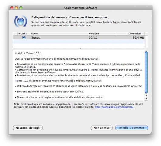 E’ stato da poco rilasciato un aggiornamento per iTunes. Il noto player musicale arriva così alla versione 10.1.1 con interessanti novità. Vediamole assieme.