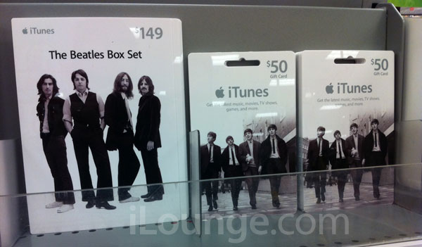 Apple ha iniziato a vendere delle iTunes Gift Cards a tema Beatles nei suoi stores. Scoperta dai nostri colleghi di iLounge, una card, dal valore di 149$, dove sulla cover è presente un immagine della band vista di fronte con uno sfondo bianco e la scritta “The Beatles Box Set” in alto.