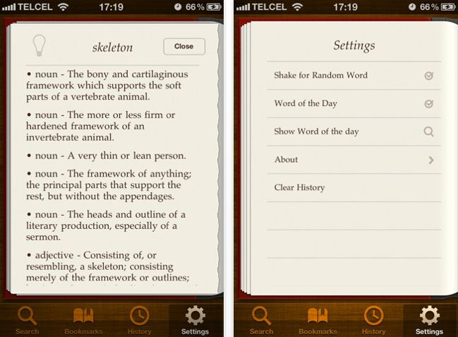 Si tratta di un dizionario della lingua inglese dall’aspetto grafico molto curato e caratterizzato da una facilità d’uso degna di nota, inoltre per ogni parola trovata è disponibile anche una frase di esempio riguardante un discorso dove potrebbe essere presente quella parola, quindi un’applicazione della parola stessa nel linguaggio di tutti i giorni.