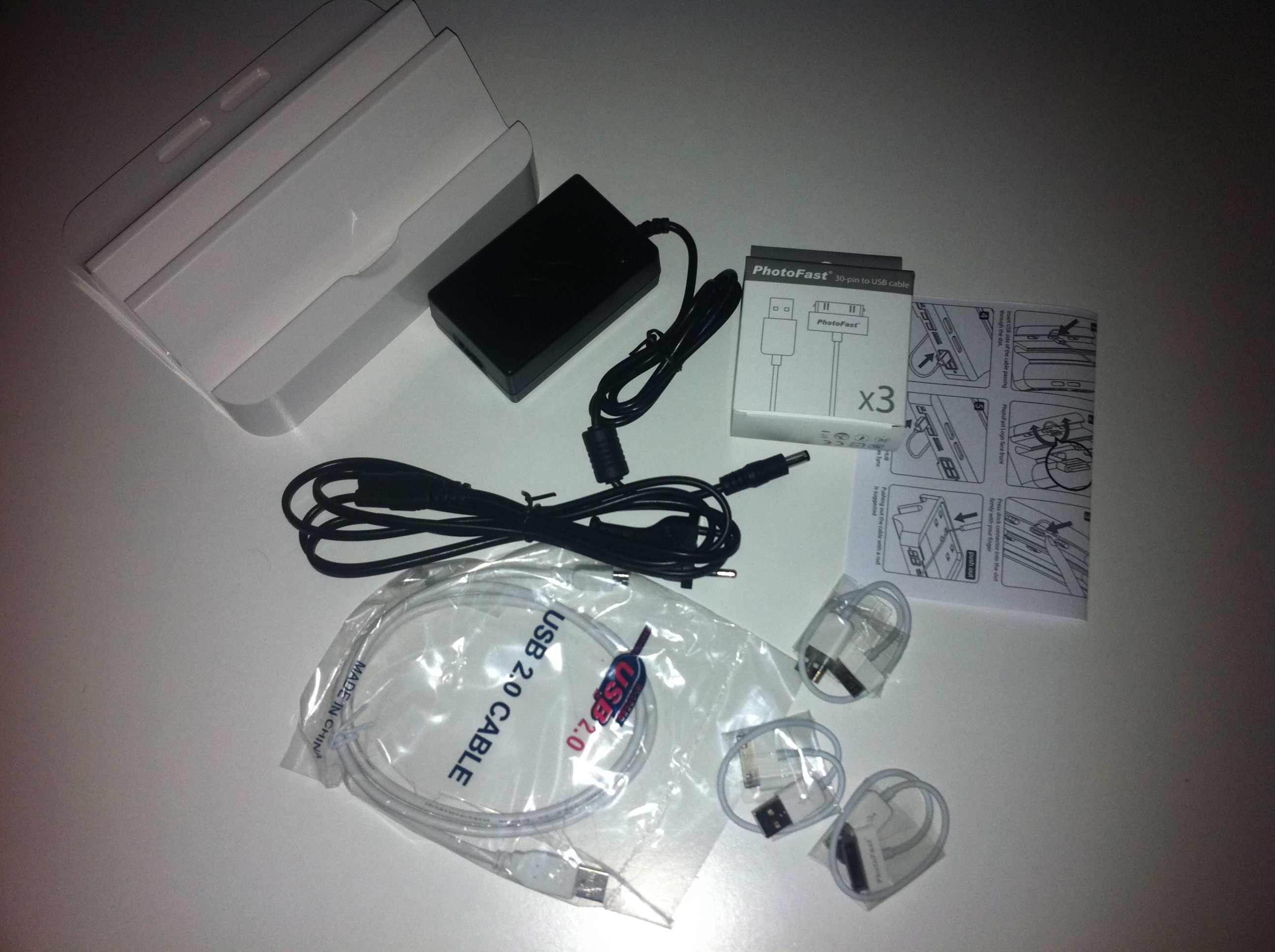 Il prodotto arriverà a casa in una confezione abbastanza grande (forse troppo) che, oltre alle istruzioni, conterrà tutto il necessario per collegare tre dispositivi, ovvero il cavo di alimentazione, un cavo usb per il collegamento al PC/Mac e 3 connettori dock approvati Apple.