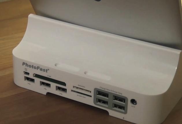 Sul retro della docking station troviamo anche 2 slot in cui potremo inserire il camera connection kit, in modo da averlo sempre pronto per l’utilizzo.