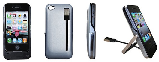 Il case è dotato di una batteria integrata da 1500 mAh, di un cavo USB per la connessione al computer e la sincronizzazione e di una piccola clip metallica che consentirà di appoggiare l’iPhone in verticale, come potete vedere dall’ultima immagine qui sopra.