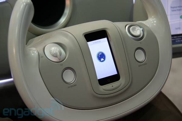 Grazie alla tecnologia sviluppata da Denso, sarà possibile collocare l’iPhone direttamente sul volante della nostra auto e, sfruttando l’applicazione apposita, usufruire di molti servizi interessanti. L’iPhone comunicherà con un piccolo display su cui verranno riportate le varie informazioni.