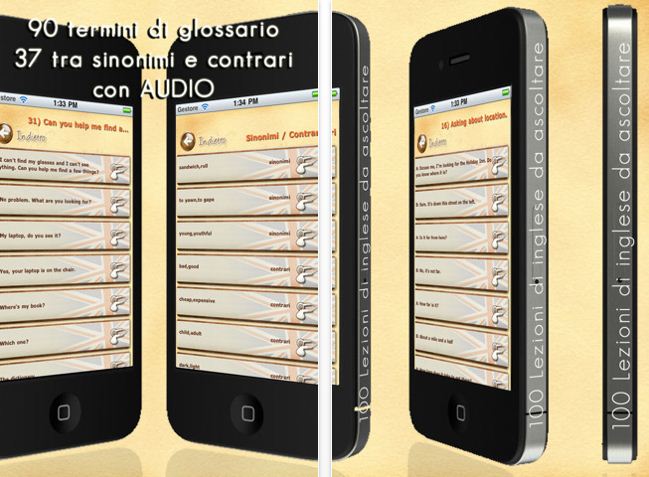 100 Lezioni di ingleseda ascoltare 1/3 è disponibile in AppStore ed è compatibile con iPhone, iPod touch e iPad. Richiede iOS 3.2 o successive. Essendo un’applicazione Universale potremo acquistarla una sola volta ed installarla su tutti i nostri dispositivi.