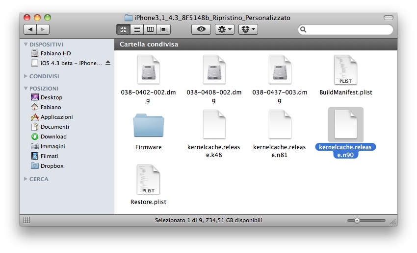 1. Entrate nella cartella del Firmware Personalizzato di prima (quella in cui avete messo la nuova Ramdisk sostituendo il file già esistente), e copiate il file “kernelcache.release.n90” sul Desktop.