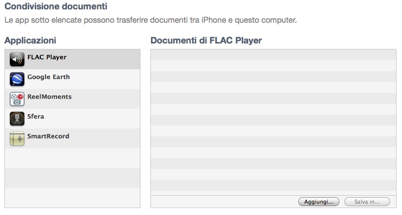 Purtroppo però, ne iTunes ne l’applicazione iPod di iOS sono in grado di riprodurre questo tipo di file: ecco che entra in gioco Flac Player, un’applicazione davvero ben fatta che grazie alla compatibilità con il File Sharing in iTunes, vi permetterà di ascoltare i brani musicali compressi con questo codec.