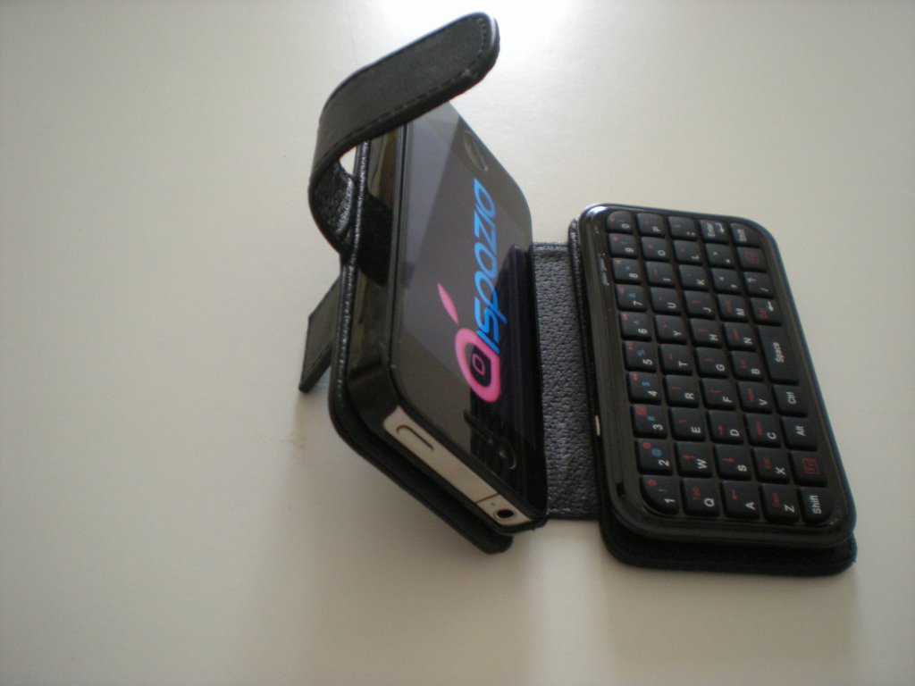Questa risulta essere una pratica custodio che incorpora al suo interno anche una comoda tastiera Bluetooth che, collegata al nostro iPhone 4, ci permetterà di scrivere utilizzando tasti fisici.