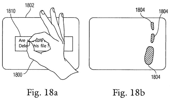 Esempi di gesti reali potrebbero essere ad esempio il pollice alzato o il pollice e l’indice che formano un cerchio (come in foto) per dare l’OK ad una serie di richieste. Nel brevetto troviamo inoltre la descrizione di un’opzione di sicurezza dove verrebbe richiesto all’utente di disegnare dei gesti personali per accedere al dispositivo o ad alcune informazioni.