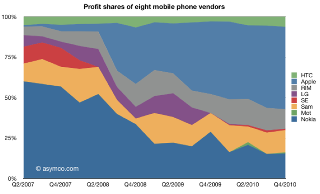 Gli ultimi risultati incoronano Android re degli smartphones e testimoniano una perdita di quota di mercato da parte di Apple. Tuttavia, l’azienda di Cupertino risulta essere la più profittevole, portandosi a casa il 51% dei profitti totali.