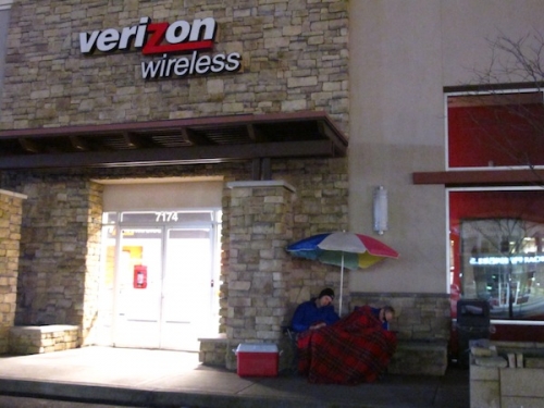 L’iPhoneVerizon-mania continua a diffondersi senza sosta in America, ed infatti due ragazzi sono già in fila davanti la porta del negozio in attesa di acquistare l’oggetto dei desideri!