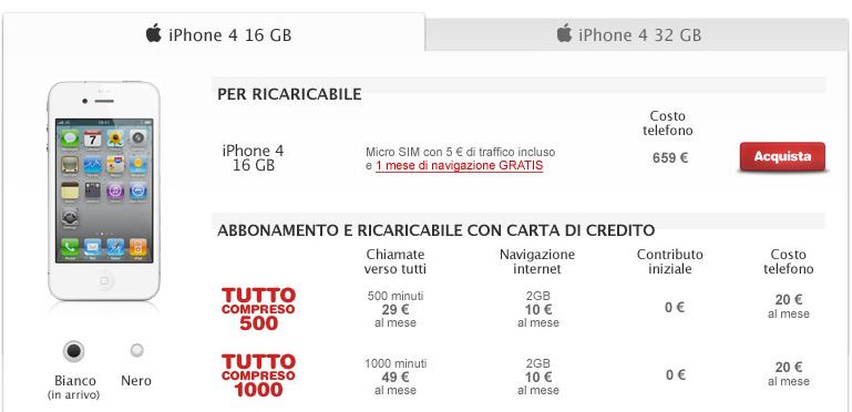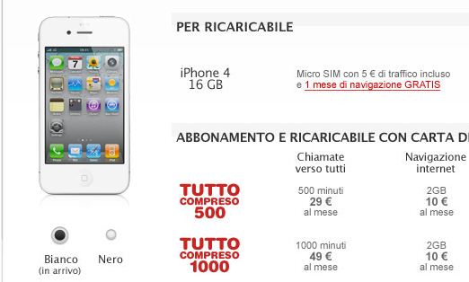 Sul sito ufficiale di Tim è da poco apparso nella pagina riguardante l’iPhone 4, la dicitura “in arrivo” sotto la casella di selezione per la colorazione bianca.