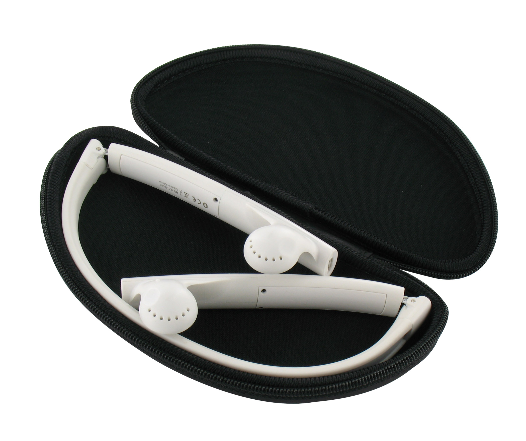 Sono dotate di una pratica custodia semirigida dalla forma di una mezza luna delle dimensioni di un astuccio porta occhiali. Ripiegate e disposte nel loro astuccio, le cuffie diventeranno in un istante piccolissime e si potranno trasportare comodamente ovunque si voglia,anche in una piccola borsa a mano.