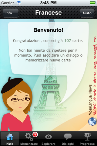 MosaLingua è un’applicazione che propone un metodo diverso dai soliti che sia allo stesso tempo ludico ed efficace: poca grammatica, sessioni di studio brevi e adatte all’utilizzo nomade degli smartphones, dialoghi con situazioni comuni del quotidiano, tanti bonus e consigli per progredire più rapidamente nell’apprendimento della lingua straniera.