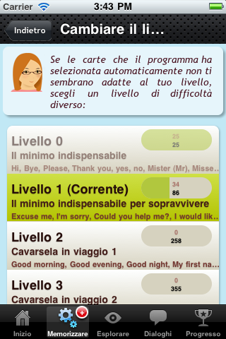 - 10 livelli disponibili, dal vocabolario di base a quello specializzato
