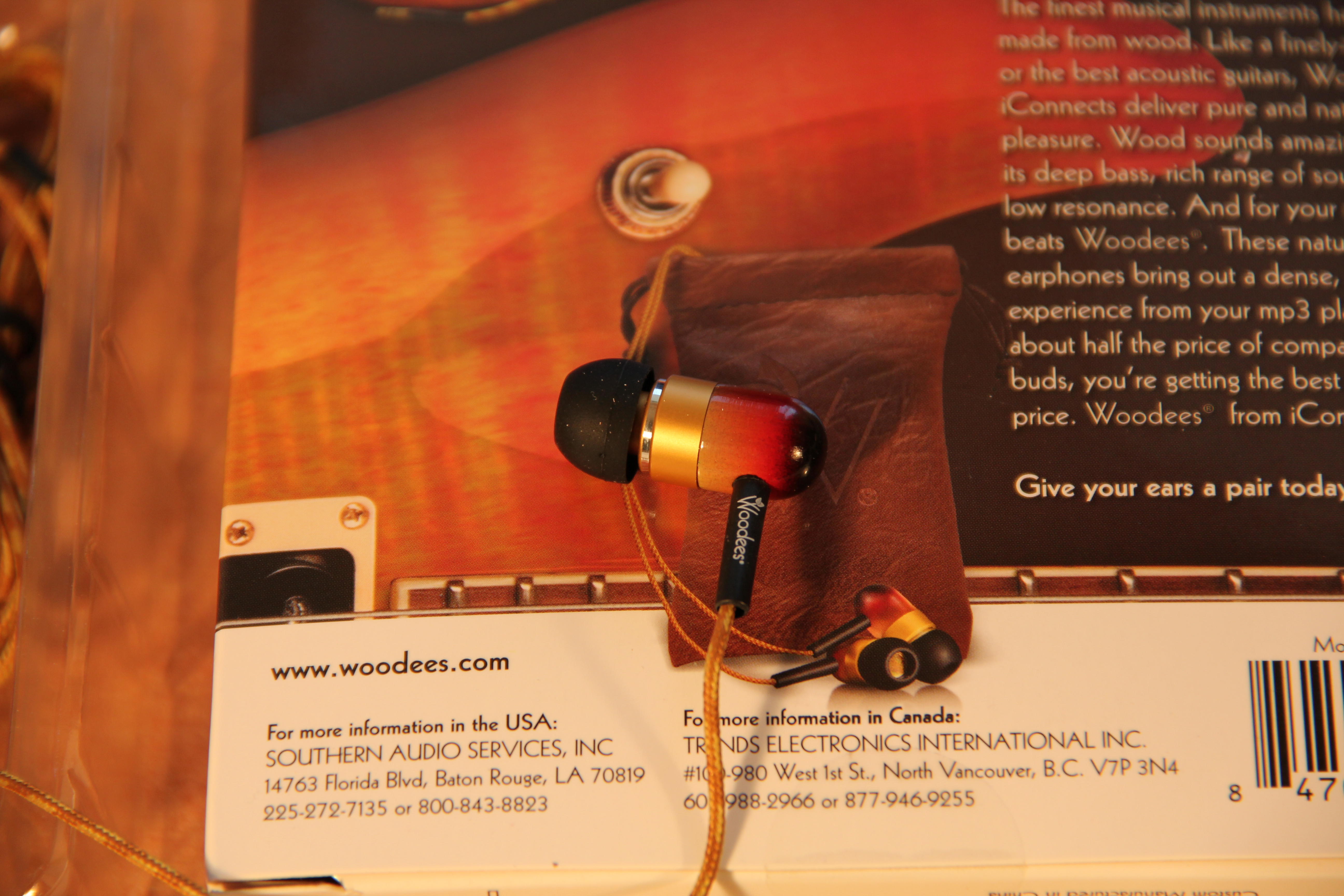 Già dalla confezione non si può non rimanere colpiti dallo stile e dal design del prodotto. Ed effettivamente anche al contatto le cuffie confermano le impressioni iniziali, presentando un design molto ergonomico. Il cavo richiama, per i colori e in parte i materiali, quello della corda delle chitarre. Da notare, inoltre,i minimi dettagli delle due cuffie con la scritta Woodees e del telecomando di colore bronzo con tasti neri.