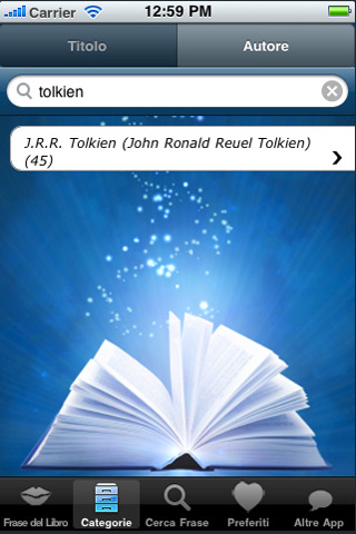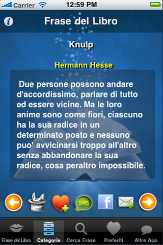 “Le frasi dei Libri” consente di accedere ad un database contenente oltre 2000 frasi.