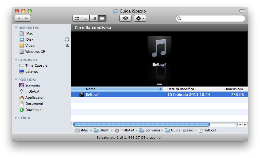 Per comodità, vi sconsiglio di sovrascrivere la prima. Potete però utilizzare gli altri 5 “spazi” a disposizione per inserire le vostre suonerie personalizzate. Tornando alla guida, riprendete il file sul desktop che avete appena rinominato in .caf e cambiategli di nuovo il nome, in maniera tale da renderlo perfettamente uguale ad uno dei 6 che abbiamo elencato qui sopra. Ad esempio “Bell.caf”