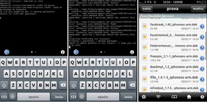 BackToDeb, come suggerisce il nome, permette di ricreare il pacchetto di installazione di ogni applicazione o tweak che abbiamo scaricato e installato tramite le repository di Cydia. Questo significa che, una volta utilizzato lo script, potremo trovare tutti i pacchetti .deb delle relative applicazioni installate sui nostri dispositivi, in una cartella comune. Grazie a questo processo, risulterà molto più semplice e meno faticoso reinstallare tutti i nostri tweak e applicazioni in seguito ad un ripristino, in quanto basterà collegarci tramite SSH al nostro iPhone e trasferire tutti i pacchetti sul nostro computer.