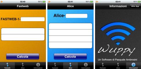 Ricordiamo che Wuppy era un’applicazione che permetteva di recuperare la nostra password WPA di default “Alice” o “Fastweb”. Bastava infatti inserire il nome della rete senza fili e in pochi secondi l’app calcolava la password.