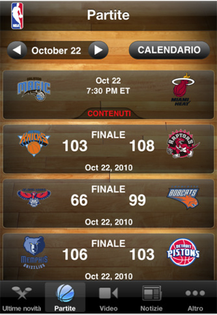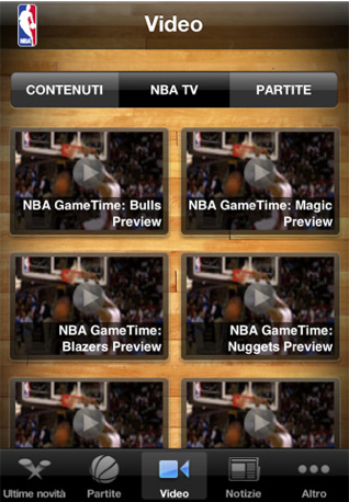 In altro infine, troviamo le impostazioni dell’applicazione e la classifica delle due coste, est ed ovest. Un’altra funzione interessantissima è quella della visione in diretta delle partite, infatti se avete l’abbonamento NBA Game Time (49,99 €) potrete gustarvi tutte le partite di tutta la stagione sul vostro iDevice.