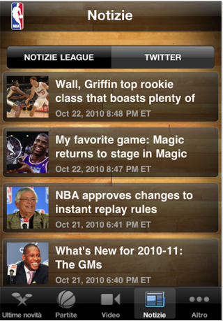 Sicuramente avrete già sentito parlare di questa magnifica app in quanto all’inizio di ogni video sul sito nba.com e durante ogni partita viene sponsorizzata continuamente. E’ suddivisa sostanzialmente in cinque schermate, nella prima, ultime novità, vengono racchiuse le notizie più importanti dell’ultima settimana mediante articoli, video e punteggi.