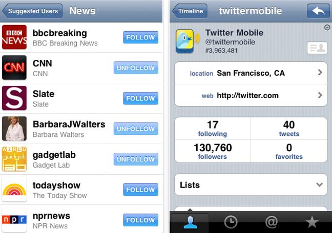 Twitter è disponibile in AppStore ed è compatibile con iPhone, iPod touch e iPad. Richiede iOS 3.1 o successive.