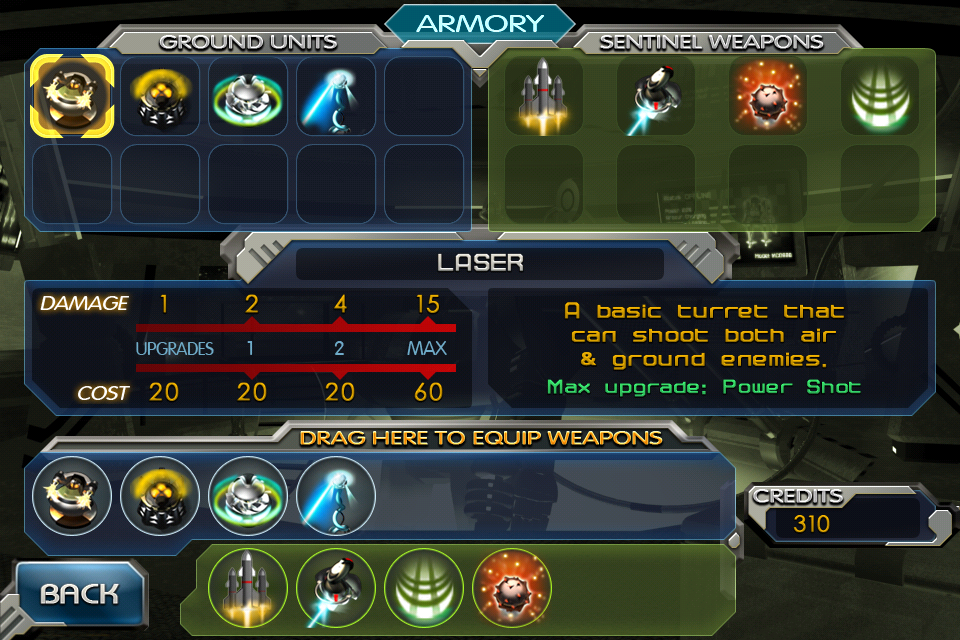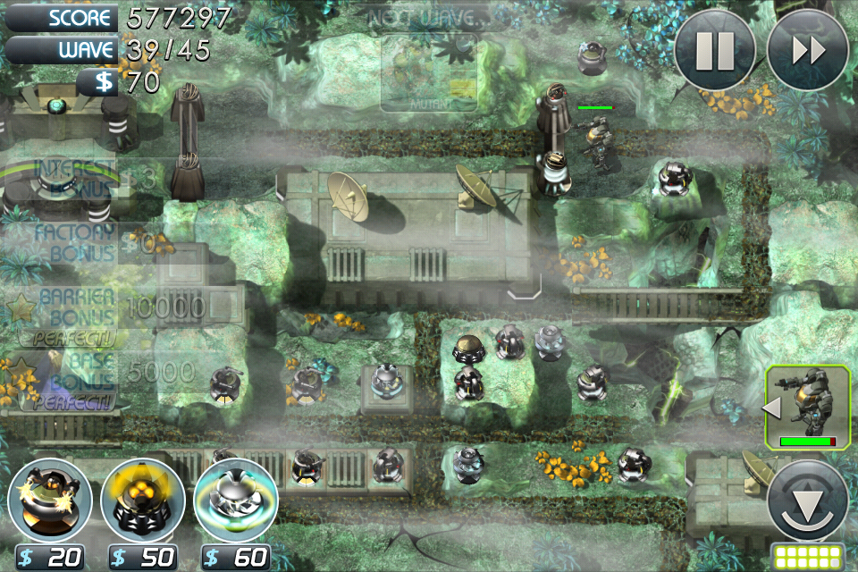 La modalità di gioco Endless è strettamente legata alla prima in quanto permette di affrontare i livelli sbloccati con il proseguire della campagna utilizzando solo torrette ed abilità sbloccate nella stessa, fronteggiando infinite ondate di nemici con l’obiettivo di sopravvivere il più possibile ed accumulare quindi il più alto quantitativo di punti. I nostri punteggi verranno poi (come quelli della modalità Classic di cui parlerò tra poco) inviati alle leaderboards online di OpenFeint e GameCenter, per competere all’ultimo punto con i giocatori di tutto il mondo.