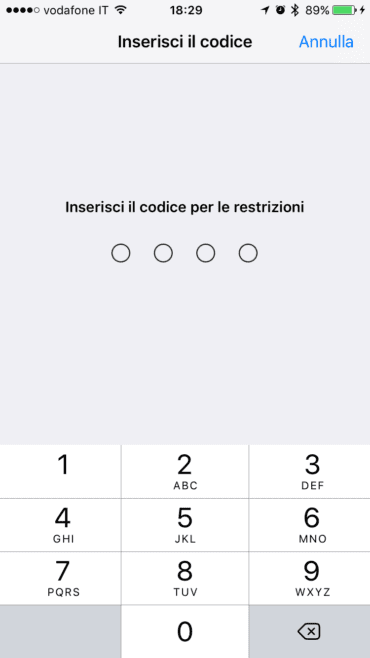 Nota: Non tutti utilizzano le restrizioni su iPhone e quelli che lo fanno solitamente utilizzano lo stesso codice di sblocco dell’iPhone. Con questo sistema si ottiene quindi un codice che potrebbe essere valido anche per sbloccare il telefono ma, per fortuna, Apple ha deciso di introdurre un codice di sblocco a 6 cifre per la Lockscreen, mentre quello per le restrizioni è di 4 cifre. La sicurezza di iOS quindi, non è compromessa.