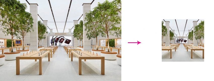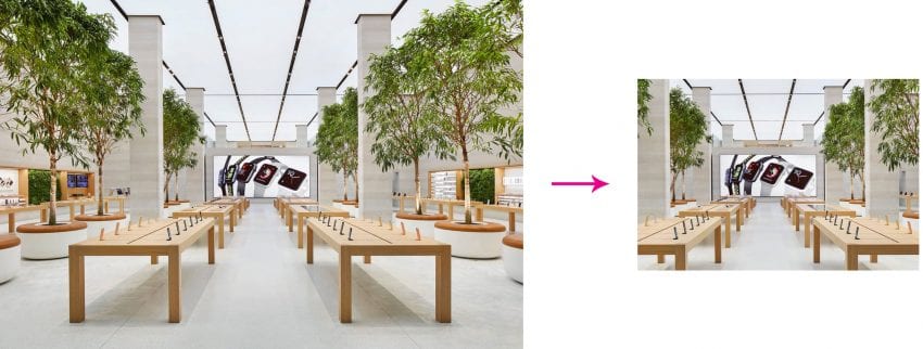 Selezionando “Crop” invece, andrete a tagliare la foto, lasciando fuori tutto quello che è in eccesso rispetto alla dimensione che avete indicato. Ad esempio, se avete un’immagine da 2400 x 1500 pixel e volete tagliarla a 800 x 300 pixel, otterrete soltanto la porzione delle dimensioni che avete scelto.