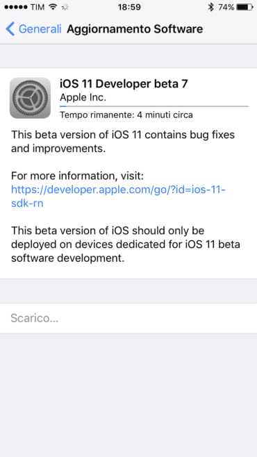 Apple ha da poco rilasciato la settima beta di iOS 11 dedicata a tutti gli sviluppatori. L’aggiornamento è già disponibile via OTA sugli iPhone e iPad compatibili.