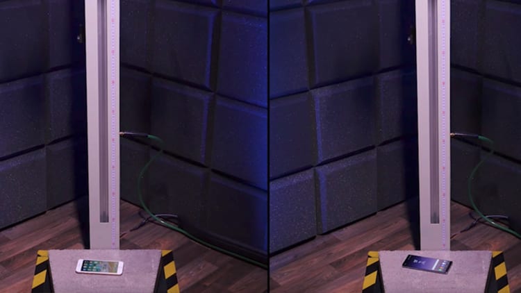 L’ultimo test invece sottopone i due dispositivi ad una serie di cadute sul lato display ed iPhone 8 cede prima, all’ottava caduta, con il vetro posteriore che addirittura perde pezzi risultando inutilizzabile prima del concorrente.