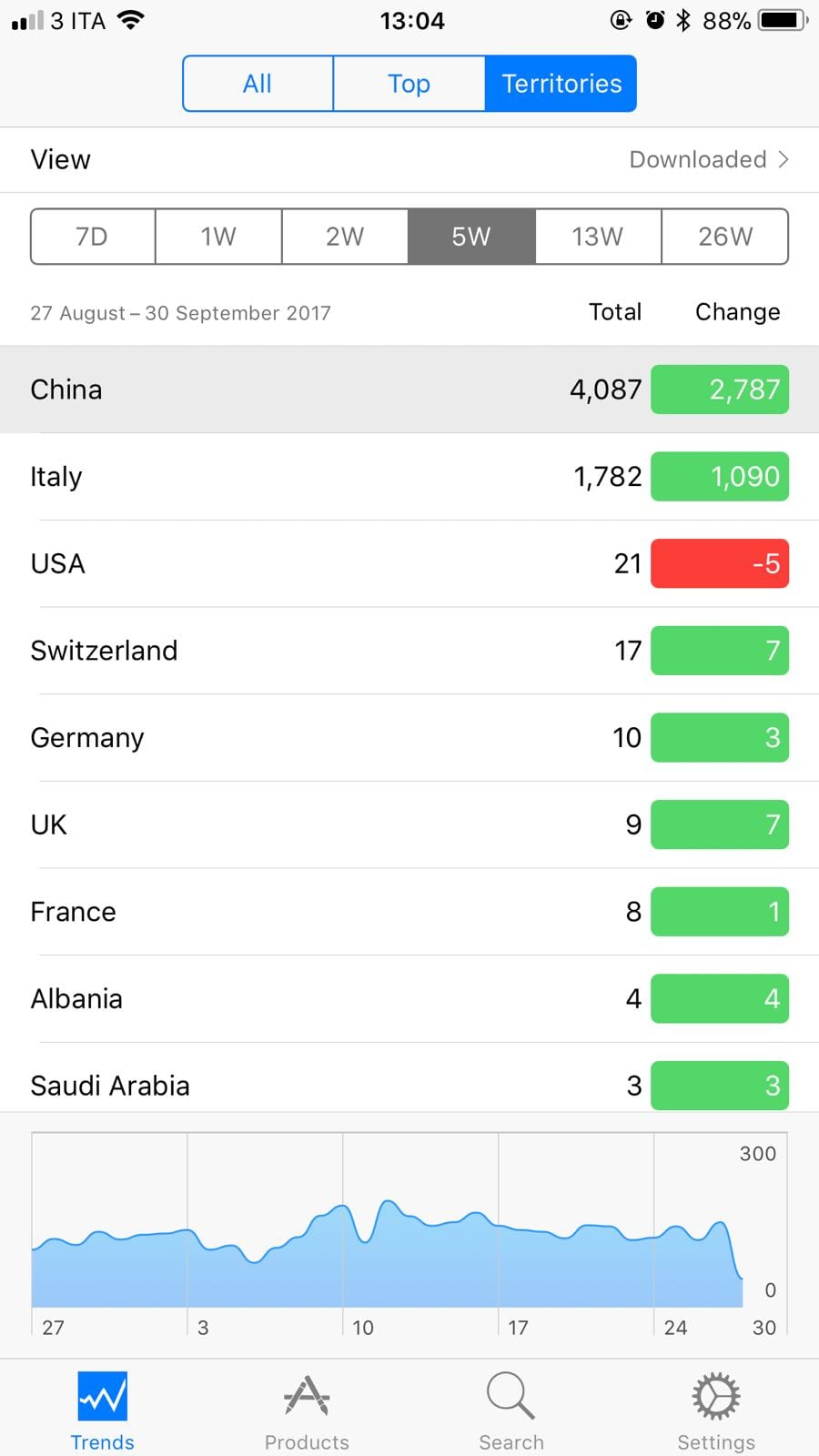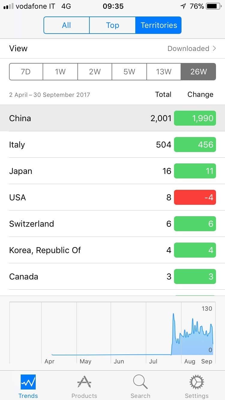 Diversi sviluppatori hanno notato che negli ultimi tempi stanno ricevendo una grossa quantità di download dalla Cina. Come segnalato originariamente da un nostro sviluppatore ad iSpazio, sono migliaia i download provenienti da Cina e Giappone all’interno delle statistiche di iTunes Connect.