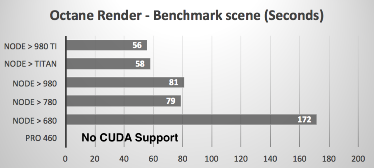 Ecco alcuni benchmark ottenuti da degli appositi software in grado di calcolare la potenza grafica del nostro Mac. I test sono stati effettuati su un MacBook Pro 15” di fine 2016, dotato di una GPU interna RX 460 da 4 GB, che viene utilizzata come termine di paragone nei grafici sottostanti. Le schede grafiche testate sono quelle Nvidia, compatibili grazie ai nuovi driver presenti direttamente in macOS High Sierra. I risultati sono davvero ottimi e la potenza grafica aggiuntiva si nota.