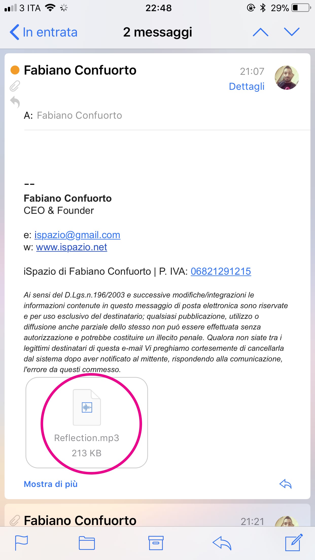 1. Scaricate il file MP3 (M4R) ed inviatevelo tramite email