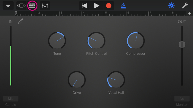 5. Cliccate sul triangolino accanto all’icona di registrazione rossa. In questo modo disattiverete il metronomo.