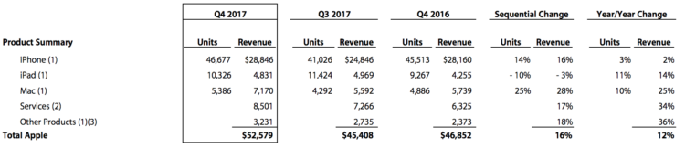 A distanza di tre mesi dagli ultimi risultati fiscali, Apple pubblica i dati relativi al quarto trimestre del 2017.