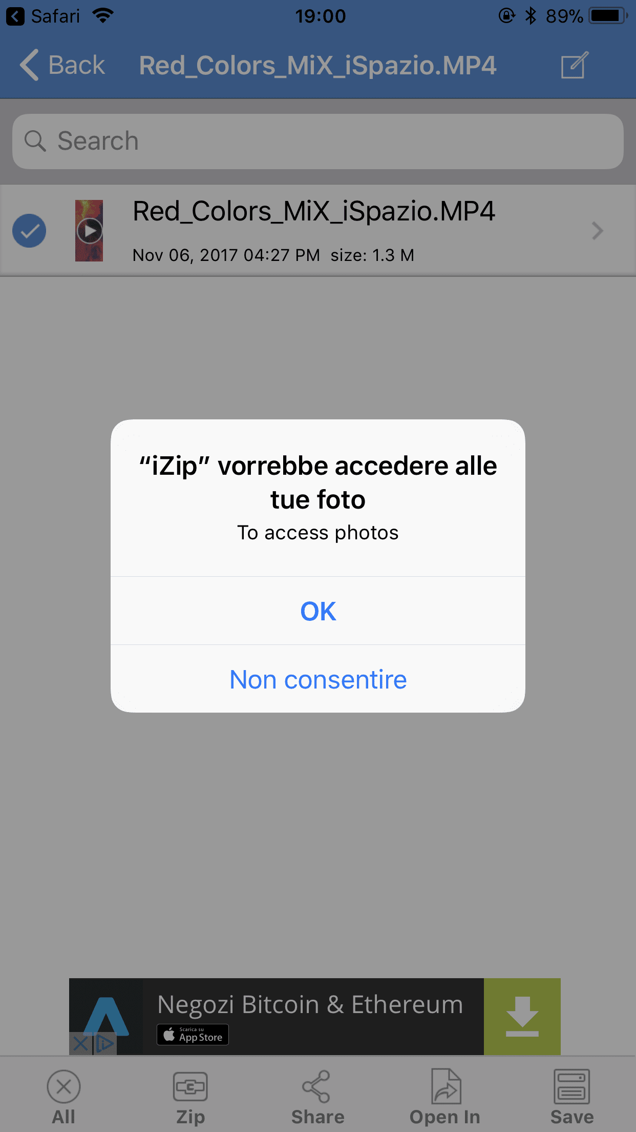 4. A questo punto un processo automatico vi porterà fino al popup con scritto “Would you like to extract all files?” cliccate su OK e alla fine visualizzerete i 3 video estratti in una cartella. Cliccate il pulsante “All” che trovate in basso a sinistra nell’applicazione, selezionate i 3 video e poi cliccate “Save”. A questo punto vi ritroverete i video direttamente nella Galleria di iOS.