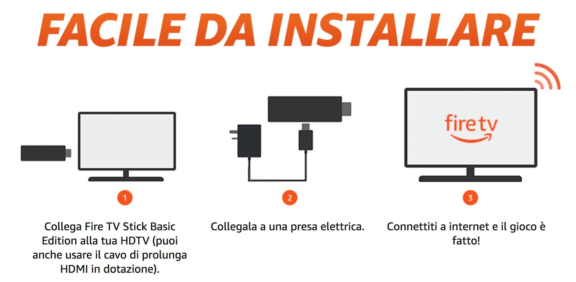 Amazon inizia a dare del filo da torcere anche alla Apple TV. Da oggi è ufficialmente disponibile anche in Italia la nuova Fire TV Stick che permette di collegare la vostra HDTV ad un mondo di intrattenimento online. La TV riuscirà ad andare online utilizzando una connessione WiFi ed avrà accesso ad un’ampia gamma di film, serie TV e giochi. Con Fire TV Stick, inoltre sarà possibile accedere facilmente ad anche ad Amazon Prime Video, Netflix, YouTube e molto altro ancora.