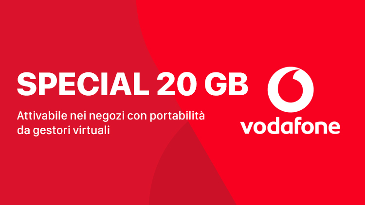 Vodafone ha abilitato le attivazioni della Special 20 GB in tutti i negozi. L’offerta purtroppo è dedicata esclusivamente ai clienti di operatori virtuali, che effettuano il passaggio a Vodafone.