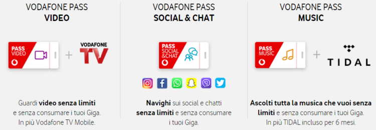 L’SMS di Vodafone contiene le indicazioni per attivare il Pass. Scegliendo uno tra i 3 proposti potrete guardare video, navigare sui social e chattare o ascoltare musica senza limiti e senza consumare Giga. Dopo 1 mese si disattiva in automatico. Per maggiori informazioni consultate voda.it/happyfridaypass.