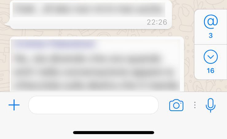 - Quando si viene menzionati in una chat, appare in basso a destra l’icona della “@” accompagnato dal numero delle volte in cui si è stati menzionati.