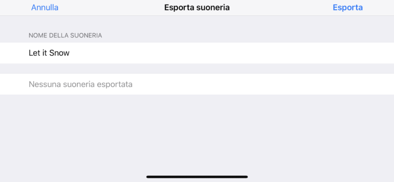 5. Adesso si aprirà una schermata bianca, cliccate “Suoneria” poi su “Esporta” > “Usa suoneria come” e scegliete “Suoneria”. Fatto! Provate a farvi chiamare e sentirete subito il nuovo suono.